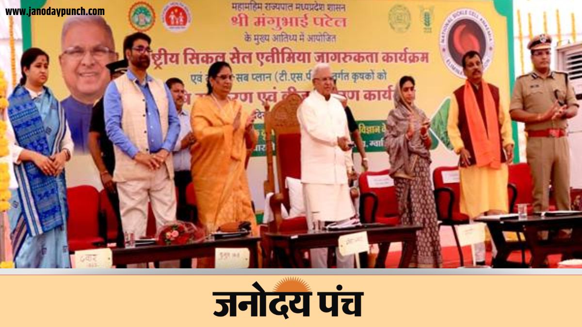 जनोदय पंच। भोपाल में आयोजित राष्ट्रीय सिकल सेल एनीमिया जागरूकता कार्यक्रम में राज्यपाल मंगुभाई पटेल ने जनजातीय क्षेत्रों के विकास के लिए स्वास्थ्य और आधुनिक कृषि पद्धतियों की आवश्यकता बताई। कार्यक्रम में 300 जनजातीय किसानों को 36 लाख रुपये से अधिक के कृषि उपकरण, बीज और हितलाभ वितरित किए गए।