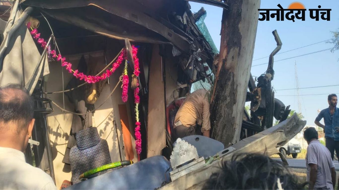 इंदौर-भोपाल राज्यमार्ग पर कोठरी के पास भीषण बस हादसा, पेड़ से टकराई वर्मा ट्रेवल्स, हेल्पर की मौत, चार घायल