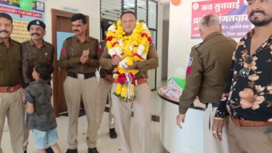 खंडवा; एक विदाई ऐसी भी, दुल्हन सा सजा थाना, जमकर हुई आतिशबाजी, खूब थिरके पुलिस वाले,तबादले पर खुशी नहीं, जश्न बना मिसाल: पदम नगर थाना प्रभारी प्रवीण आर्य की ऐतिहासिक विदाई।