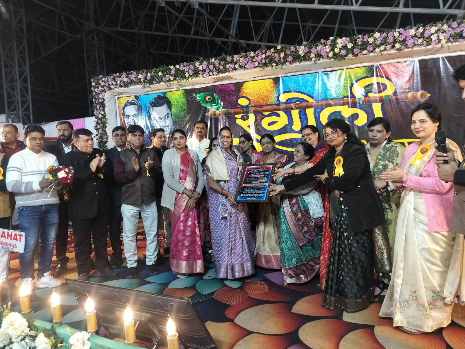 सेंधवा में रंगोली स्वर समूह द्वारा आयोजित संगीतमय संध्या में सदाबहार गीतों की मधुर प्रस्तुतियों ने श्रोताओं को भाव-विभोर कर दिया। कार्यक्रम में नगर पालिका अध्यक्ष बसंती बाई यादव मुख्य अतिथि रहीं। कलाकारों की प्रस्तुतियों और सम्मान समारोह को सराहा गया।