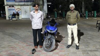 सेंधवा में कान फोड़ू साइलेंसर पर पुलिस की कार्रवाई, मोटर साइकिल का साइलेंसर निकलवाकर चालान