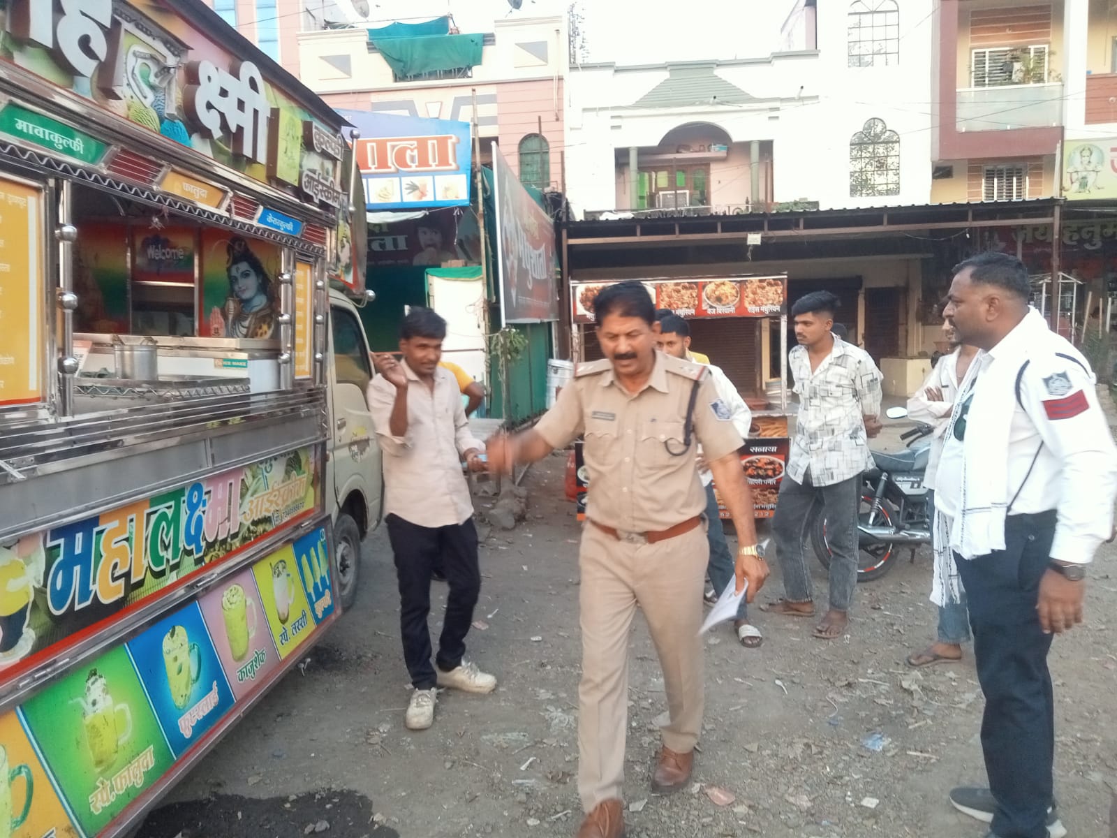 जनोदय पंच। खलघाट। विगत कई दिनों से लगातार सूचना मिल रही थी की इंदौर मुंबई मार्ग स्थित खलघाट फोरलेन व्यस्तम चौराहे पर गलत तरीके से रोड पर वाहन खड़े रहने की जिससे यातायात बाधित अथवा आमजन को भी समस्या हो रही थी कई बार ड्यूटी पर पदस्थ प्रधान आरक्षक अजय सोलंकी द्वारा समजाईश देने पर भी वाहन चालको द्वारा यातायात बाधित हो रहा था । खलघाट यातायात पुलिस चौकी प्रभारी नारायण सिंह कटारा, आरक्षक मनोज,प्रधान आरक्षक अजय सोलंकी,द्वारा व्यस्तम चौराहे पर चलानी करवाई की गई दो पहिया वाहन,चार पहिया वाहन चालकों के पेपर ड्राइविंग लाइसेंस चेक किए गए मौके पर पेपर पूर्ण नहीं होने पर यातायात प्रभारी द्वारा समजाईश दी गई नेसनल हाईवे पर आए दिन दुर्घटना हो रही है गाड़ी मालिको को बगैर हेलमेट से सड़क पर वाहन ना चलाए सुरक्षित रहे सेफ रहे । यातायात प्रभारी नारायण सिंह कटारा द्वारा बताया गया ऐसी चलानी करवाई आगे भी निरंतर जारी रहेगी