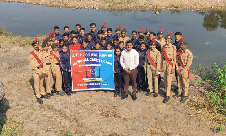 सेंधवा: राष्ट्रीय प्रदूषण नियंत्रण दिवस पर एनसीसी कैडेट्स ने चलाया नदी सफाई अभियान