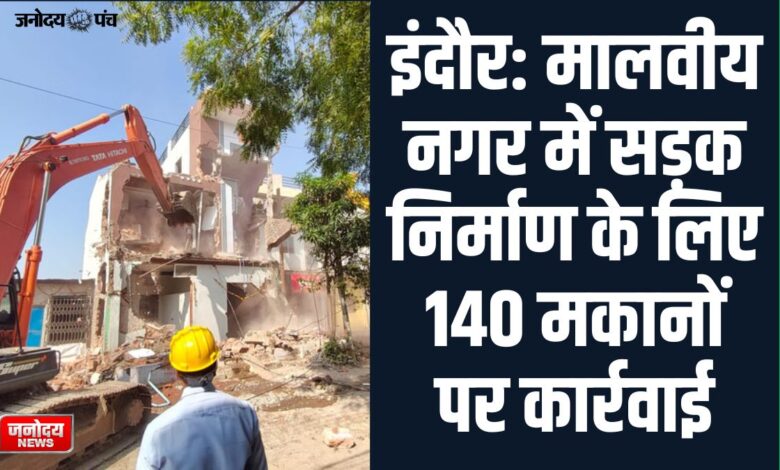 इंदौर में सड़क निर्माण के लिए मालवीय नगर में 140 मकानों पर कार्रवाई की गई, स्थानीय निवासियों ने भी स्वेच्छा से मकानों का हिस्सा तोड़ दिया।