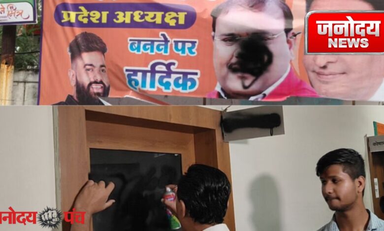इंदौर में भाजपा की नई नगर कार्यकारिणी की घोषणा के बाद पार्टी के भीतर विरोध के स्वर तेज हो गए। नगर मंत्री बनाए जाने पर खाती समाज ने आपत्ति जताई। विरोध प्रदर्शन के दौरान भाजपा नगर अध्यक्ष के पोस्टर पर कालिख पोती गई और कई कार्यकर्ताओं ने इस्तीफे सौंप दिए।
