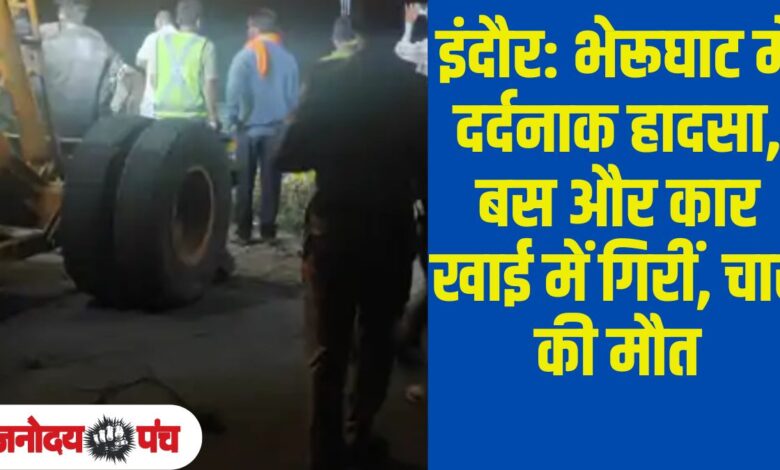 इंदौर: भेरूघाट में दर्दनाक हादसा, बस और कार खाई में गिरीं, चार की मौत, कई घायल