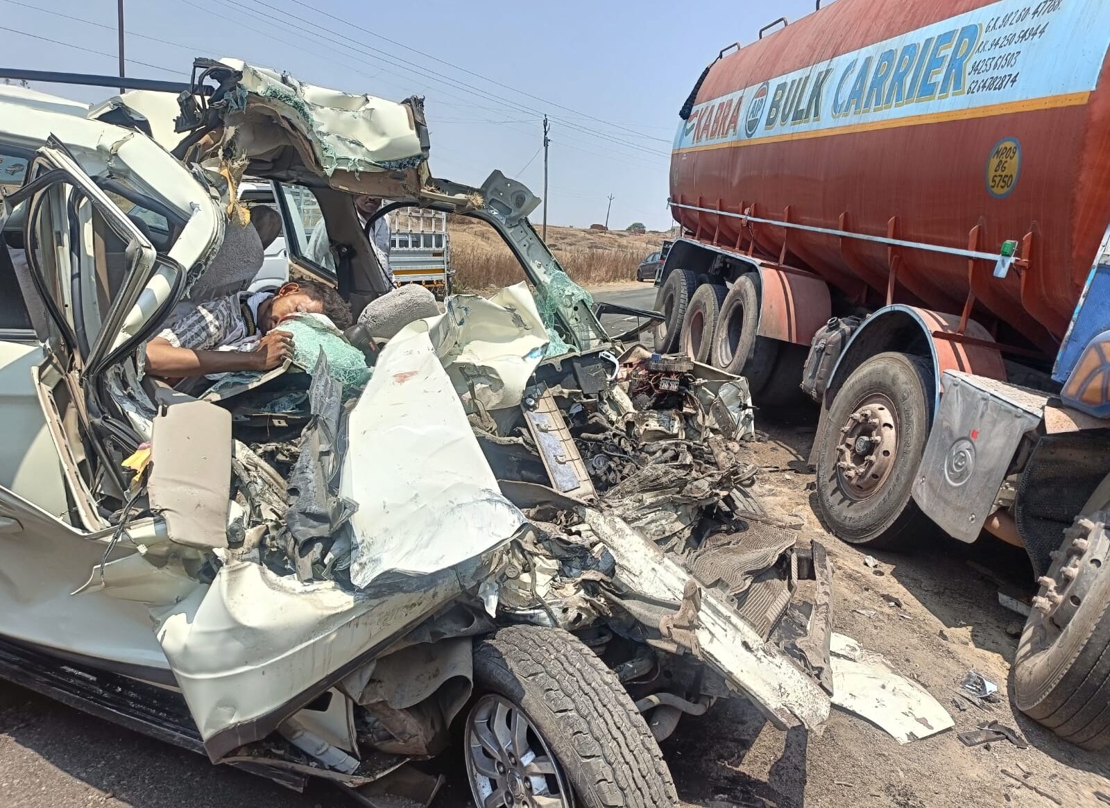 बड़वानी के जुलवानिया टोल प्लाजा के पास टैंकर और कार की टक्कर में चार लोगों की मौत, तीन घायल