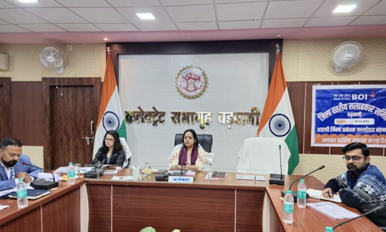 बड़वानी। कलेक्टर जयति सिंह की अध्यक्षता कलेक्ट्रेट सभागृह बड़वानी में जिला स्तरीय बैंकर्स सलाहकार एवं समीक्षा समिति की बैठक आयोजित की गई। बैठक में जिला पंचायत सीईओ सुश्री काजल जावला, संयुक्त कलेक्टर श्री सोहन कनाश, डीडीएम नाबार्ड, बैंक के आंचलिक/क्षेत्रीय कार्यालयों के प्रतिनिधि, जिला समन्वयक एंव विभागीय अधिकारी प्रमुख रूप से सम्मिलित हुए।
