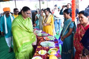 इसके पश्चात, उन्होंने पोषण पखवाड़ा के तहत आयोजित पोषण प्रदर्शनी का अवलोकन किया और वहां प्रदर्शित स्थानीय मोटे अनाजों (श्री अन्न) एवं पौष्टिक व्यंजनों के महत्व को सराहा। इस अवसर पर स्थानीय जनप्रतिनिधि, कलेक्टर श्रीमती जायती सिंह, विभागीय अधिकारी और बड़ी संख्या में ग्रामीण उपस्थित रहे।