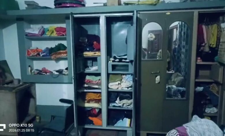 रविवार सुबह करीब 7 बजे जब परिवार जागा, तो दरवाजा बाहर से बंद मिला। इसके बाद सेवक राम नारगावे ने पड़ोसी पुरुषोत्तम को फोन कर बुलाया, जिन्होंने कुंडी खोली। नीचे पहुंचने पर ताले टूटे मिले और सारा सामान बिखरा पड़ा था। चोर 3 नेकलेस, 4 चेन, 3 मंगलसूत्र, 5 अंगूठियां, 8 चूड़ियां, कान के टॉप्स तथा भारी चांदी के कड़े और पायल चोरी कर ले गए। सूचना मिलते ही खेतिया पुलिस मौके पर पहुंची। चोरी की गंभीरता को देखते हुए वरिष्ठ अधिकारियों को अवगत कराया गया और एफएसएल टीम को भी बुलाया गया है। पुलिस सीसीटीवी फुटेज के आधार पर आरोपियों की तलाश कर रही है। फिलहाल बदमाशों के खिलाफ केस दर्ज कर जांच शुरू कर दी गई है।