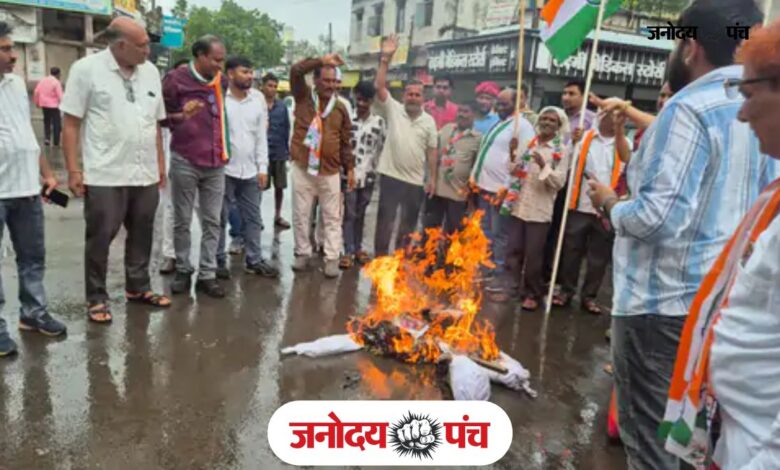 बड़वानी में मंत्री कैलाश विजयवर्गीय के बयान पर बवाल, कांग्रेस ने किया पुतला दहन