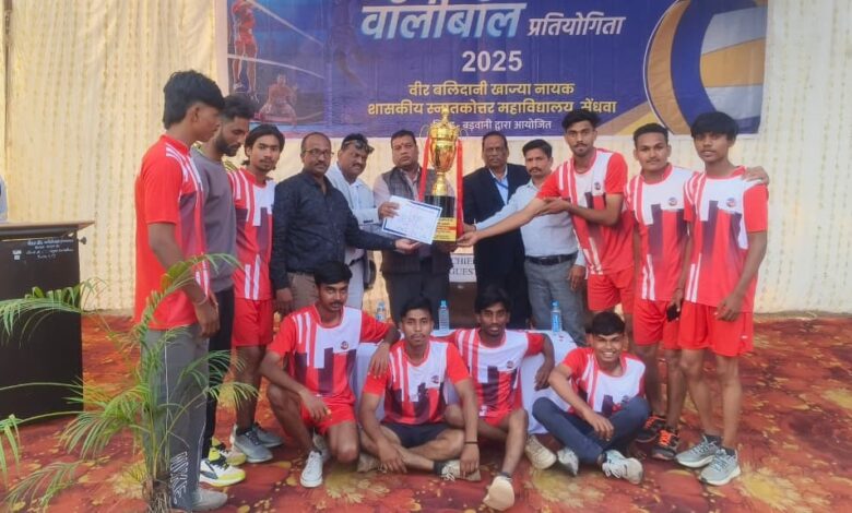 सेंधवा। वीर बलिदानी खाज्या नायक शासकीय स्नातकोत्तर महाविद्यालय सेंधवा में गुरुवार को अंतर जिला संभाग स्तरीय वॉलीबॉल टूर्नामेंट का सफल आयोजन किया गया। इस प्रतियोगिता में बुरहानपुर, खरगोन, खंडवा, अलीराजपुर और बड़वानी जिलों की टीमों ने भाग लिया। यह प्रतियोगिता मध्यप्रदेश उच्च शिक्षा विभाग और क्रांति सूर्य टंट्या भील विश्वविद्यालय खरगोन के संयुक्त तत्वावधान में संपन्न हुई। कार्यक्रम का शुभारंभ एसडीओपी सेंधवा अजय वाघमरे, विश्वविद्यालय के स्पोर्ट्स डायरेक्टर डॉ प्रकाश वास्कले और कॉलेज प्राचार्य डॉ जी.एस. वास्कले की उपस्थिति में हुआ। इस अवसर पर एसडीओपी वाघमरे ने कहा कि ऐसी प्रतियोगिताएं विद्यार्थियों को बड़ा मंच प्रदान करती हैं और पढ़ाई के साथ उनके शारीरिक विकास को भी मजबूती देती हैं।