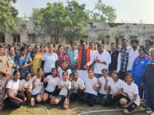खाज्या नायक शासकीय पीजी कॉलेज मैदान में बालिकाओं की कबड्डी से महोत्सव की शुरुआत, अतिथियों ने खिलाड़ियों से परिचय प्राप्त किया।
