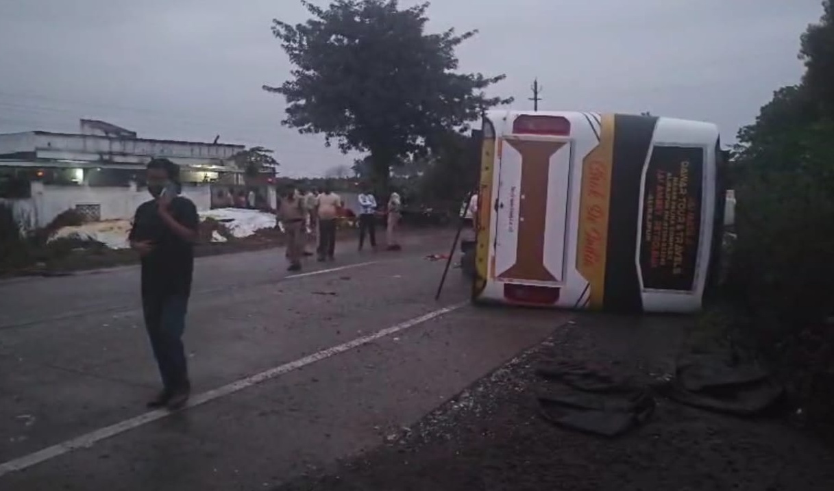 अंजड़-ठीकरी हाईवे पर यात्री बस पलटी, 16 यात्री घायल, भोपाल से बड़वानी आ रही थी बस