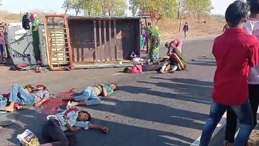 सेंधवा में मुंबई-आगरा हाईवे पर पिकअप पलटी, 12 वर्षीय बच्चे की मौत, 20 घायल