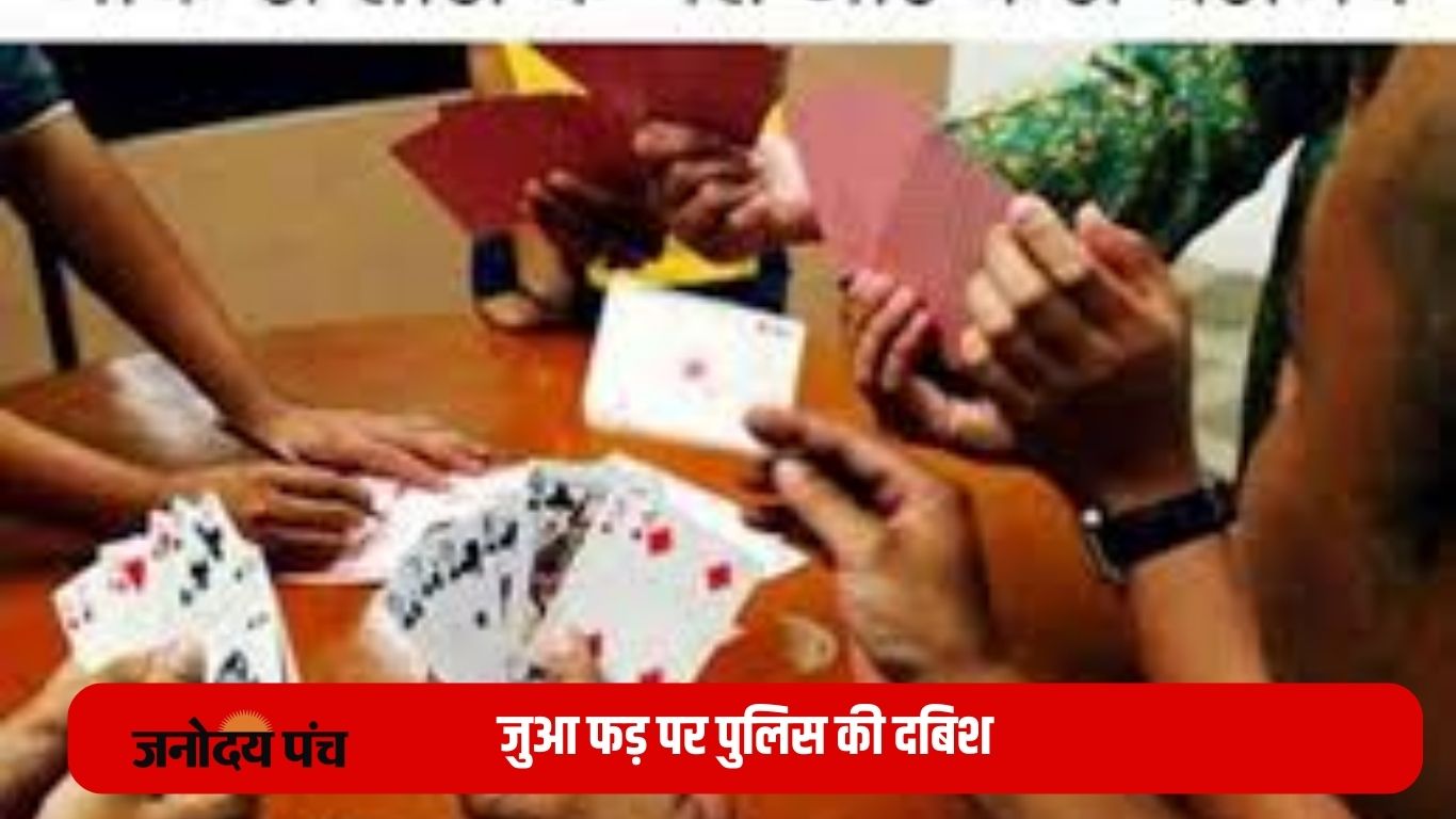 दिनांक 22.02.2026 की रात्रि कस्बा गश्त एवं चेकिंग के दौरान पुलिस को मुखबिर से सूचना मिली कि दशहरा मैदान क्षेत्र में कुछ व्यक्ति गोल घेरा बनाकर ताश के पत्तों पर रुपये-पैसों का हार-जीत का दांव लगाकर जुआ खेल रहे हैं। सूचना मिलते ही पुलिस टीम ने मौके पर पहुंचकर घेराबंदी कर दबिश दी। पुलिस को देखकर कुछ लोग भागने लगे, जिन्हें घेराबंदी कर पांच आरोपियों को मौके से पकड़ा गया।