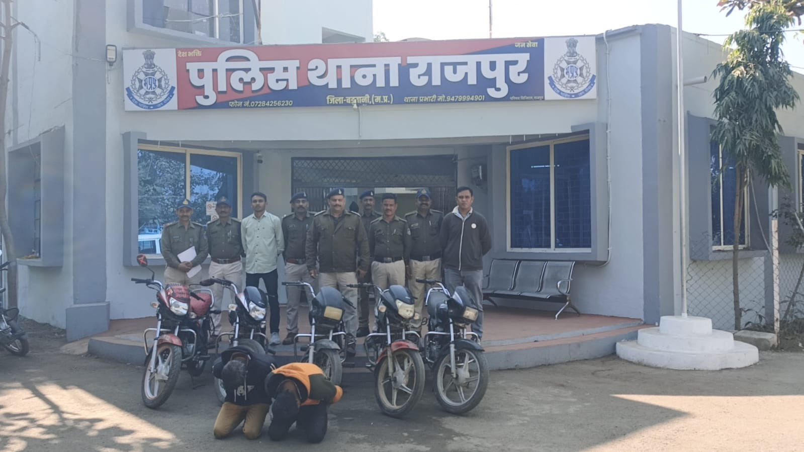थाना राजपुर क्षेत्र के कस्बा राजपुर में पलसुद रोड एटीएम के पास, सरकारी जिम के सामने, मीना बाजार, जुलवानीया रोड कियोस्क के सामने और एसबीआई बैंक के पास से मोटरसायकल चोरी की अलग-अलग घटनाएं सामने आई थीं। इन मामलों में फरियादियों की रिपोर्ट पर थाना राजपुर में अपराध क्रमांक 315/23 धारा 379 भादवि, 787/25, 788/25, 793/25 और 794/25 धारा 303(2) बीएनएस के तहत प्रकरण दर्ज कर विवेचना शुरू की गई।