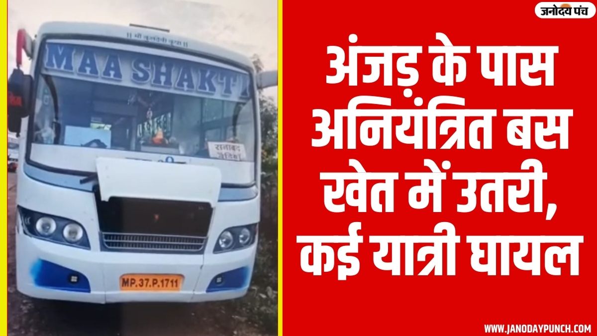बड़वानी जिले के अंजड़ थाना क्षेत्र के राजू गांधी नगर के पास एक यात्री बस अनियंत्रित होकर सड़क किनारे खेत में उतर गई। दुर्घटना उस समय हुई जब मां शक्ति बस (क्रमांक एमपी 37 पी 1711) खरगोन से बड़वानी की ओर आ रही थी। हादसे में बस में सवार कई यात्रियों को चोटें आईं।