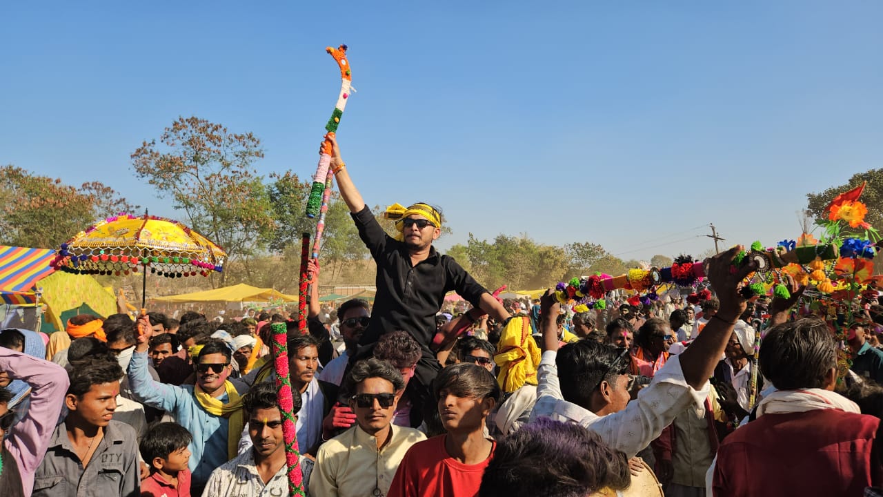 ​मेले में आदिवासी वेशभूषा, पारंपरिक आभूषण और सांस्कृतिक वाद्य यंत्रों के साथ समाज की एकता और अखंडता का अनूठा संगम देखने को मिला।