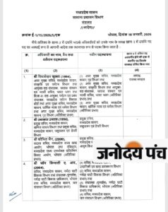 जारी आदेश के तहत शिवशेखर शुक्ला को अध्यक्ष, राजस्व मंडल बनाया गया है। उमाकांत उमराव को प्रमुख सचिव, पशुपालन एवं डेयरी विभाग तथा शोभित जैन को प्रमुख सचिव, आयुष विभाग की जिम्मेदारी दी गई है। जॉन किंग्सली ए.आर. को सचिव, उद्यानिकी एवं खाद्य प्रसंस्करण विभाग नियुक्त किया गया है, साथ ही नर्मदा घाटी विकास, जल संसाधन विभाग और पुनर्वास संचालक का अतिरिक्त प्रभार सौंपा गया है।
