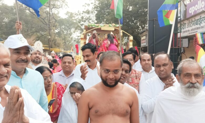 बड़वानी; प्रभु की भक्ति में झूमे श्रद्धालु निकली घट यात्रा,रथ पर सवार होकर निकले सौधर्म इंद्र और अन्य इंद्र परिवार