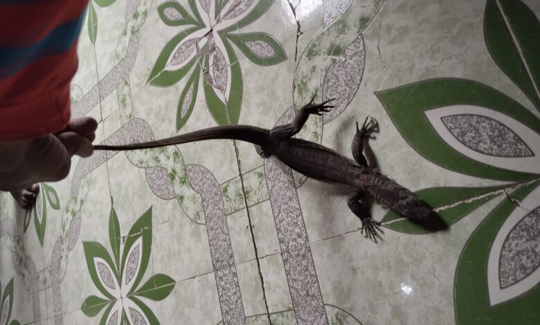 जनोदय पंच। सेंधवा। नगर के देवझिरी क्षेत्र में पंडित पवन शर्मा के मकान में मॉनिटर लिजर्ड आ गई थी। नगर के सर्पमित्र विशाल त्रिवेदी ने उसका रेस्क्यू कर वन विभाग को सौंपा।