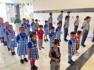 कार्यक्रम में विद्यार्थियों को चॉकलेट द्वारा मुंह मीठा करवाकर प्रवेश दिया गया।