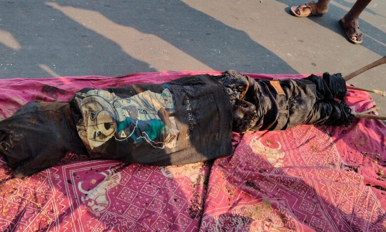 खेतिया। शंकर शिरसाठ। खेतिया क्षेत्र में मलगांव रोड पर एक खेत के पास नाली में अज्ञात युवक का कंकाल मिला। कपड़े, जेब के सामान और बेडशीट बरामद हुई, पर पहचान नहीं हो सकी। पुलिस ने मामले की जांच शुरू की और नागरिकों से जानकारी देने की अपील की।