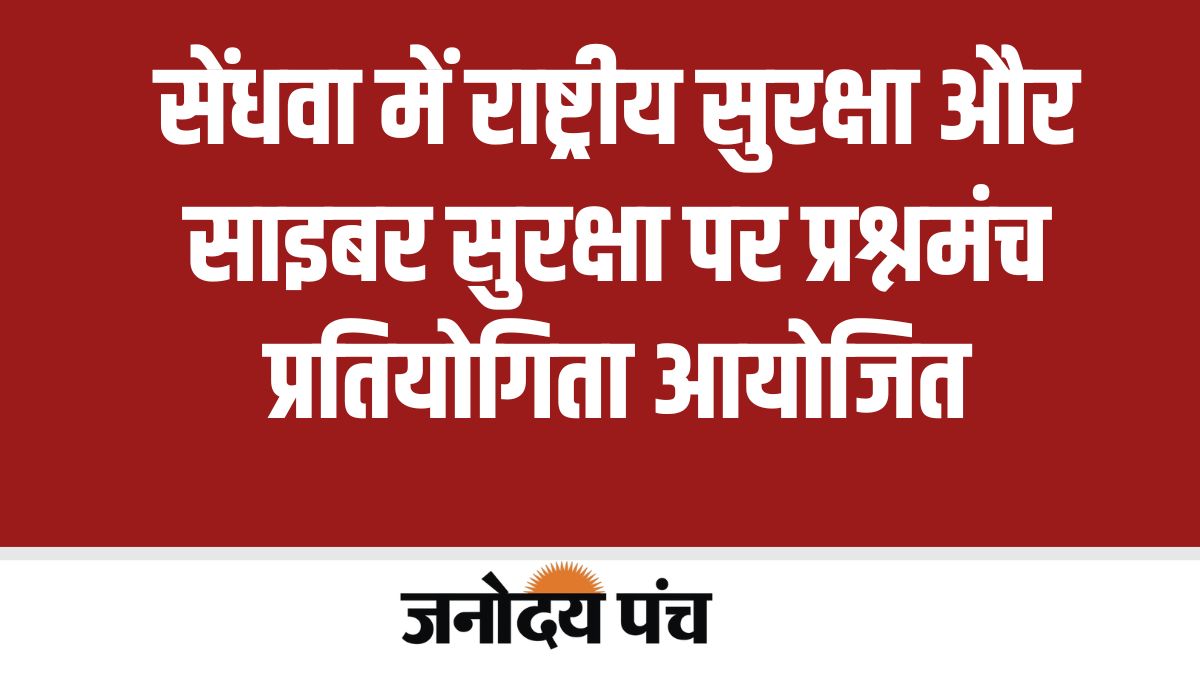 सेंधवा, जनोदय पंच। वीर बलिदानी खाज्या नायक शासकीय स्नातकोत्तर महाविद्यालय सेंधवा में भारतीय ज्ञान परम्परा प्रकोष्ठ द्वारा राष्ट्रीय सुरक्षा और साइबर सुरक्षा पर प्रश्नमंच प्रतियोगिता आयोजित की गई। राष्ट्रीय सुरक्षा परिषद के स्थापना दिवस पर हर वर्ष 4 मार्च को राष्ट्रीय सुरक्षा दिवस मनाया जाता है। वर्ष 2026 में “राष्ट्रीय सुरक्षा दिवस” का विषय “सुरक्षा बढ़ाने के लिए लोगों को शामिल करना, शिक्षित करना” रखा गया है। यह विषय भारत को विकसित राष्ट्र बनने की यात्रा में सुरक्षा और कल्याण को प्राथमिकता देने के महत्व पर जोर देता है।