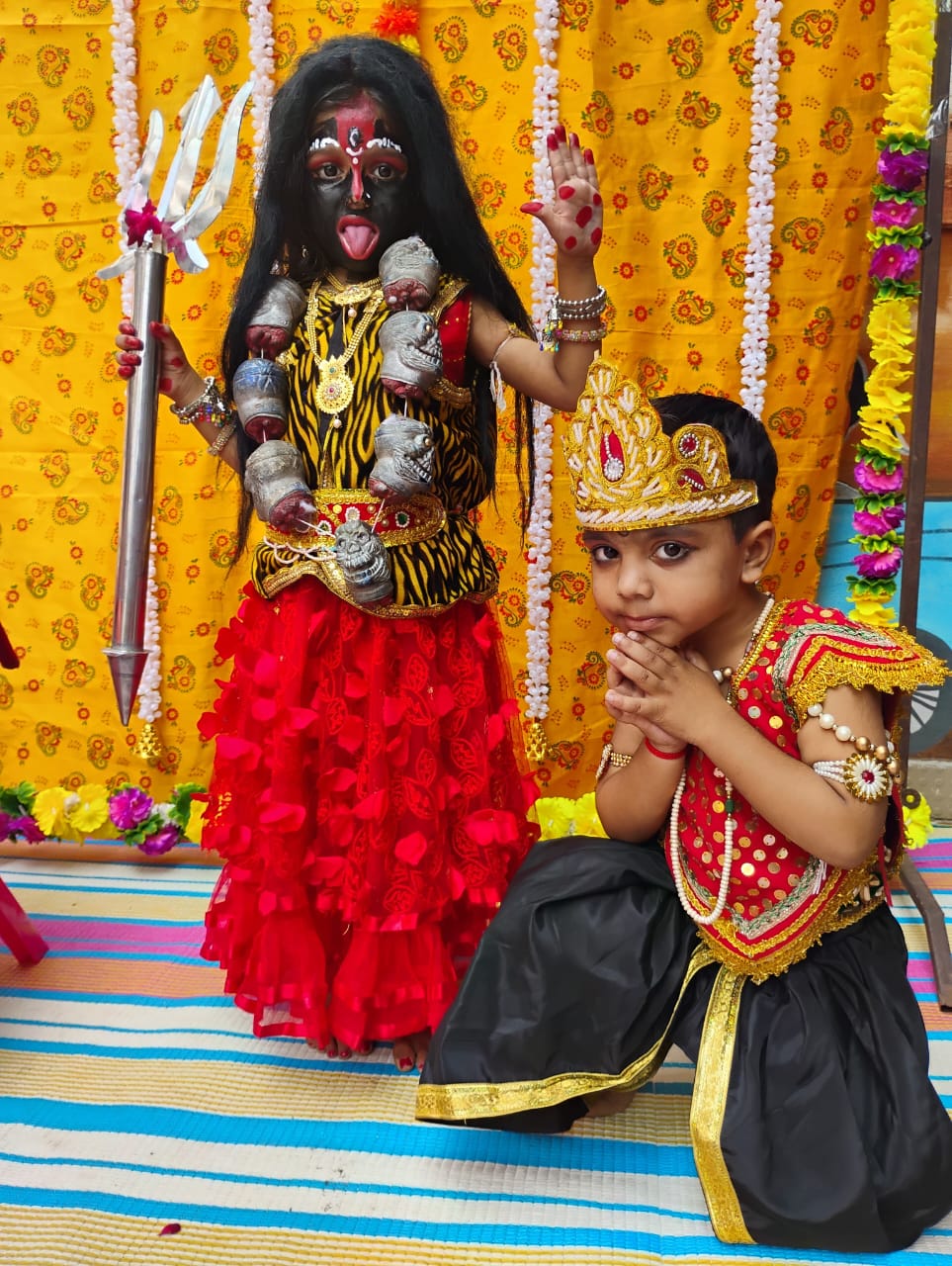 प्री-स्कूल कोऑर्डिनेटर श्रीमती शिवांगी मैडम व कुमारी ममता ने बच्चों के साथ मिलकर गरबा रास कराया, जिसमें सभी बच्चे तालियों और ढोल की थाप पर झूम उठे। स्कूल संचालक श्री हिमांशु बोरसे ने माता रूपी कन्याओं के चरण पूजित कर, उन्हें हलवा-चना का भोग कराया।