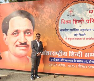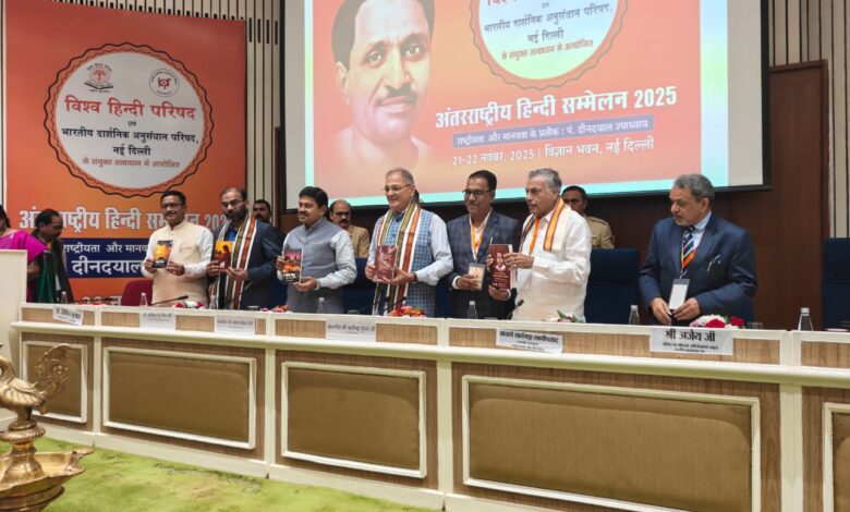 सेंधवा–विश्व हिंदी परिषद एवं भारतीय दार्शनिक अनुसंधान परिषद नई दिल्ली के संयुक्त तत्वावधान में विज्ञान भवन नई दिल्ली में अंतरराष्ट्रीय हिंदी सम्मेलन 2025 आयोजित किया गया। इस सम्मेलन में ‘राष्ट्रीयता और मानवदर्शन के प्रतीक पंडित दीनदयाल उपाध्याय’ विषय पर संगोष्ठी आयोजित की गई। सम्मेलन में राष्ट्रीय और अंतर्राष्ट्रीय स्तर से 300 से अधिक प्रतिभागियों ने सहभागिता की। इनमें शोधार्थी, विद्वान, प्राध्यापक, सामाजिक कार्यकर्ता, पत्रकार, जनप्रतिनिधि और वरिष्ठ अधिकारी शामिल रहे। संगोष्ठी के प्रथम दिवस में डॉ महेशचंद्र वर्मा अध्यक्ष एकात्म मानवदर्शन अनुसंधान एवं विकास परिषद नई दिल्ली, प्रो. पूरनचंद्र टंडन दिल्ली विश्वविद्यालय, डॉ शिवशक्ति बक्शी संपादक कमल संदेश, बलदेव पुरुषार्थ संयुक्त सचिव आर्थिक कार्य विभाग वित्त मंत्रालय भारत शासन, प्रो. हेमेंद्र जैन प्राचार्य दीनदयाल उपाध्याय दिल्ली ने मुख्य वक्ता के रूप में विचार व्यक्त किए।